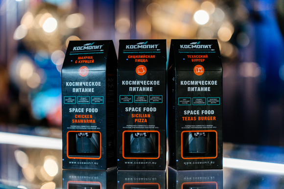 Также в вводном зале музея есть несколько вендинговых автоматов (с едой, чаем, снеками и космическим питанием), где на память себе или в подарок вы можете купить космическую еду производства компании «КОСМОПИТ» для питания космонавтов на Международной космической станции.